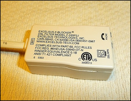 into the normal wall phone jack. This is not the normal way it is used!The stock Z-Block Filter design uses the guard band (4 - 25Khz) but IMO, it is best to NOT to design the POTS filter to use that band. Using it does NOT allow the ultimate attenuation in the "upstream" band to be achieved. Please note that at the TERMINATOR, there is a ADSL + POTS filter installed to isolate the DSL signals from this special phone line to the DTV rcvr. Over the last week, DSL performance has been superb, so the modified Z-Blocker filter is the best solution solving both the impedance loss and DSL line isolation at the DTV rcvr. |