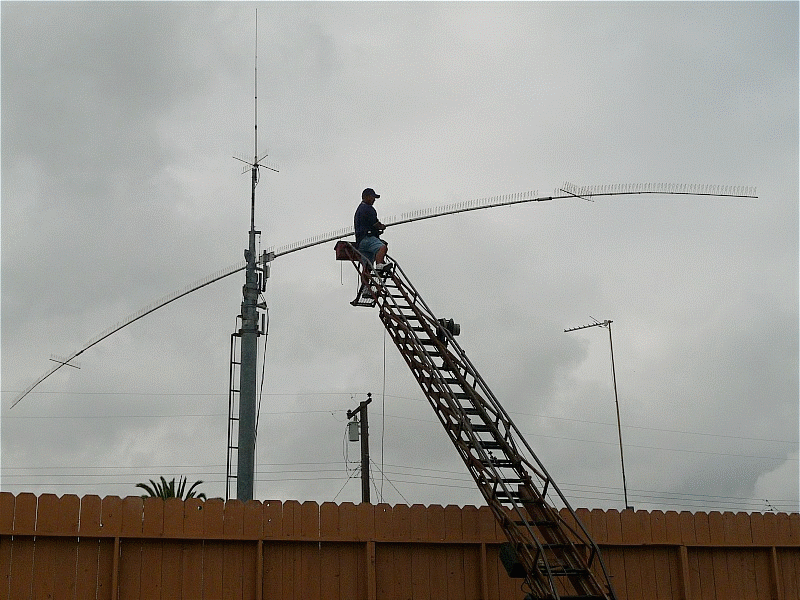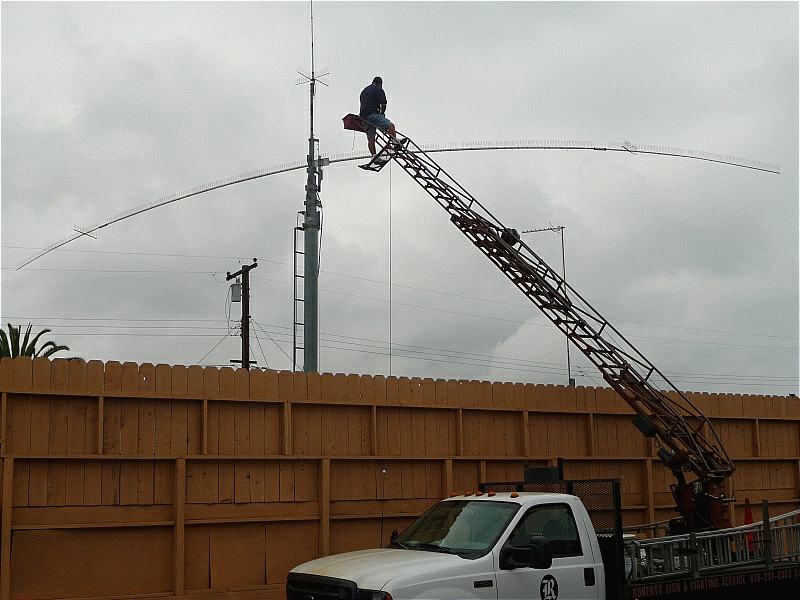 About 1-1/2 yrs ago, I did investigate ladder truck companies in San Diego and found Robert's Sign & Lighting. After talking to Bill Miller, the owner, I felt that he could be just the ticket for easy antenna repair and installation. He bought the business from "Robert" who retired and he has been running the business for 10 years. Although I never had occasion to use his services, I kept the info ready for such a time . . . and the time has come! |