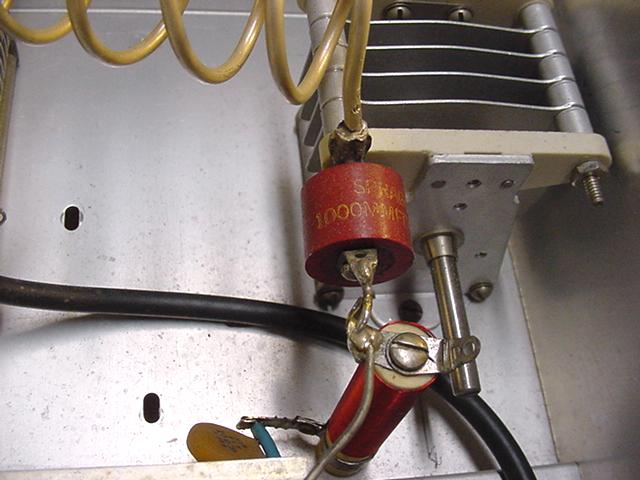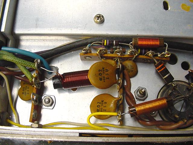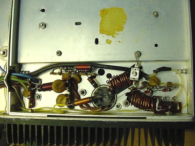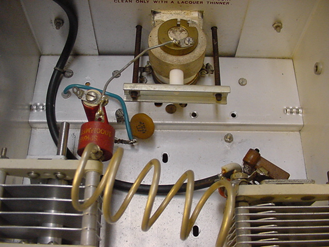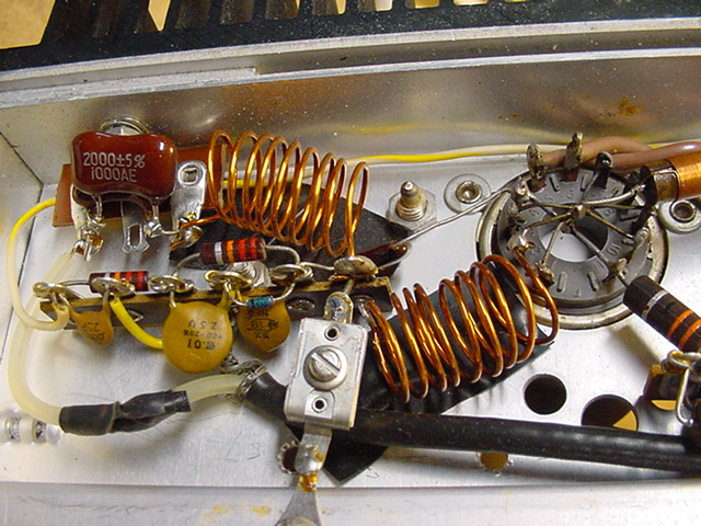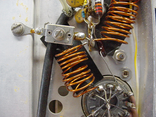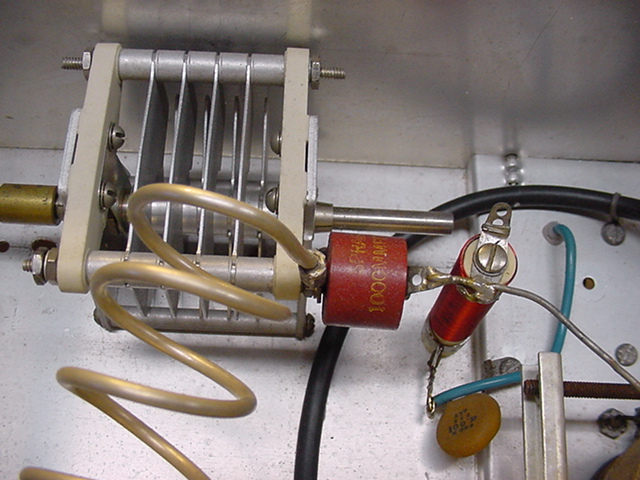 Right - This shows the modified tune capacitor as well as the coil, blocking capacitor and RF choke wiring.
